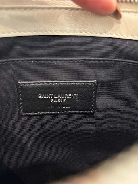 This charming YSL chevron wristlet shines in a stunning bone shade. In excellent shape, it’s the perfect playful touch to jazz up any look. Measurements: 9.25" L x 6.5" H Interior Pockets: 8 card slots and one flat pocket Comes with box and dustbag Disclaimer Bella is not affiliated, associated, authorized, endorsed...