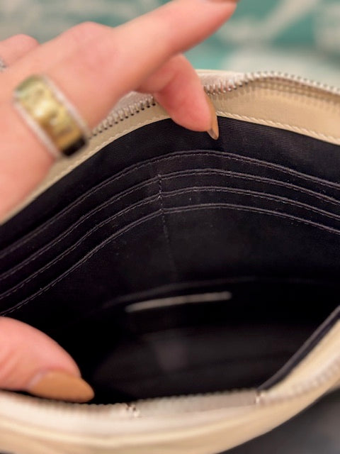 This charming YSL chevron wristlet shines in a stunning bone shade. In excellent shape, it’s the perfect playful touch to jazz up any look.