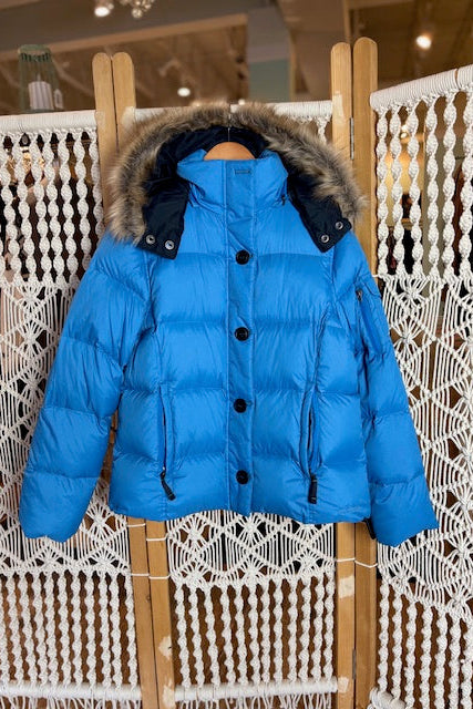 Stay cozy and stylish in this charming blue down puff coat from LL Bean. Perfect for chilly days, this hooded essential delivers warmth without the bulk. Ideal for size 10, it's your go-to layer for looking put-together while staying snug as a bug.